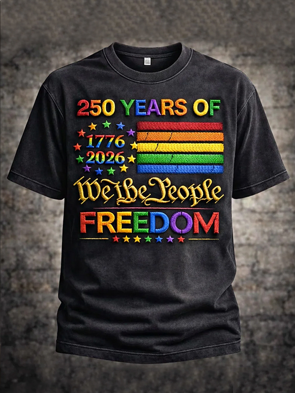 Men's 1776-2026 U.S. America 250th Anniversary 250 Years Of We The People Freedom Print Casual T-Shirt
