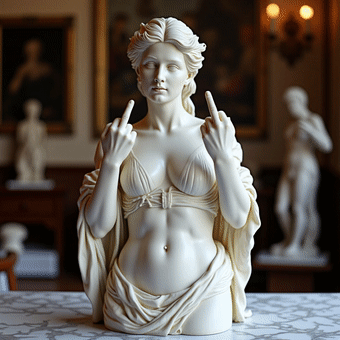 Tired of politely tolerating nonsense? Let Venus de Milo’s sassier sister do the talking for you. This Renaissance queen has upgraded her missing arms to a perfectly placed middle finger—because some days, art should say what we’re all thinking.