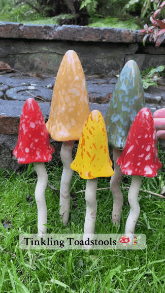 Beloved for their delicate sound and vibrant look, these original toadstools add gentle movement and a soft “tinkle” as their tops sway in the breeze. Crafted to be frost-resistant down to -10°C, they bring all-year-round colour to borders, planters, or even hanging baskets.